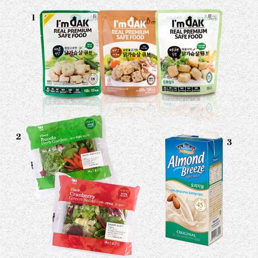1 아임닭 ‘한입 닭가슴살 큐브’ 100% 국내산 순닭가슴살과 신선한 야채들이 통으로 듬뿍 들어간 큐브 형태 닭가슴살. 정통 일본풍 카레맛 닭가슴살 큐브, 담백하고 고소한 통현미 닭가슴살 큐브, 야채가 듬뿍 들어간 매콤 닭가슴살 큐브, 버섯과 야채의 식감이 일품인 불고기맛 닭가슴살 큐브, 매콤한 청양고추맛 닭가슴살 큐브 등 총 5종이 준비돼 있어 입맛에 따라 즐길 수 있다. 파스타, 샐러드 등에 곁들여 요리할 수 있는 것이 특징.