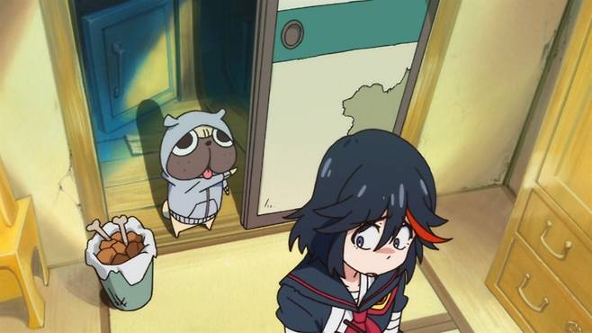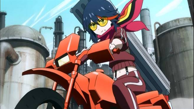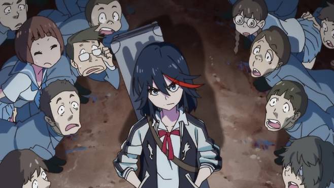 | ▲ 애니메이션 <킬라킬>의 한 장면. 주인공 '마토이 류코'의 등장. |