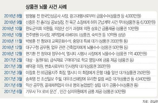 2014년 국세청은 제약회사 100여곳에 법인카드로 구매한 상품권의 사용처를 밝히라고 요구했다. 의사·약사들에게 불법 리베이트 목적으로 건넨 상품권 규모를 파악하기 위함이었다. 최근 방산 비리로 검찰 수사를 받고 있는 한국항공우주산업(KAI)은 군 장성들을 상대로 한 로비에 상품권을 활용한 것으로 알려졌다. 권태환 경제정의실천시민연합 간사는 “경실련이 자체 분석한 결과 10만원권 이상의 고액상품권이 2015년에만도 5조원 이상 발행된 것으로 파악됐다”며 “법인이 상품권을 접대비로 경비처리할 경우 구체적인 사용처를 밝히지 않아도 돼 음성적 거래에 악용될 소지가 있다”고 지적했다.
