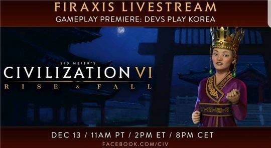 2k와 파이락시스게임즈는 오는 13일 '문명6'의 신규 확장팩 '흥망성쇠'의 콘텐츠 소개를 생중계으로 진행하겠다는 발표와 함께 새롭게 단장한 '한국 문명'의 지도자 선덕여왕의 모습을 공개했다.