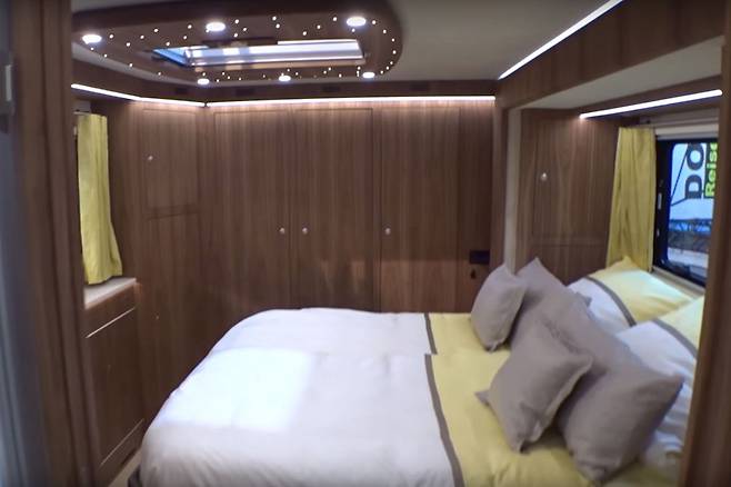트럭과 버스를 캠핑카로 개조하는 볼크너 모빌(Volkner Mobil)은 더블 침대와 온수 욕조, 완벽한 주방 시스템 등 마치 호화로운 호텔 방을 그대로 옮겨놓은 듯한 초호화 럭셔리 캠핑카 ‘퍼포먼스’를 내놨다.