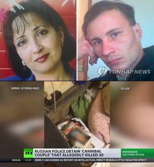 러시아 남부 도시에서 30~40대 부부가 약 20년 동안 수십 명의 무고한 사람들을 살해해 신체를 절단한 뒤 인육을 먹고 저장까지 해온 혐의로 수사를 받는 사실이 알려진 것.