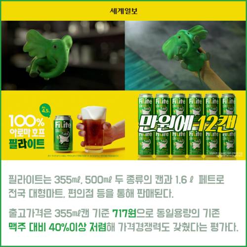 12일 주류업계에 따르면 필라이트 출고 가격은 717원으로, 기존 맥주 대비 40%가량 저렴합니다.