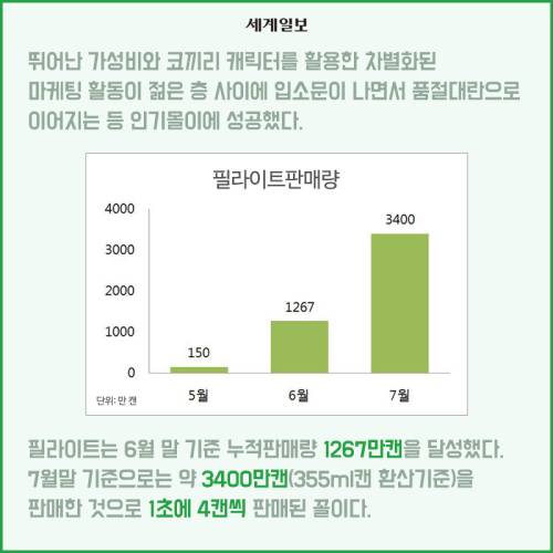 이런 예상을 뒤엎고 필라이트는 마트나 편의점 등지에서 없어서 못 파는 하이트진로의 '효자 상품'으로 급부상했습니다.