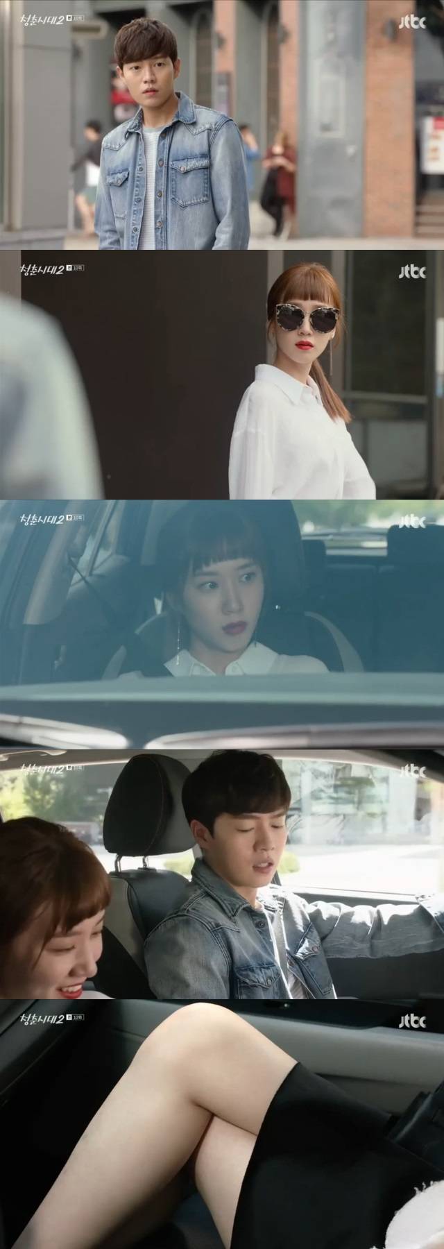 그렇게 송지원의 작전이 성공하고 돌아오는 길, 송지원은 임성민의 차 안에서 다리를 꼬고 앉았고, 임성민은 송지원의 다리에 정신이 팔린 나머지 사고를 낼 뻔하는 모습으로 두 사람의 로맨스에 새 국면을 예고했다. (사진=JTBC ‘청춘시대2’ 캡처)