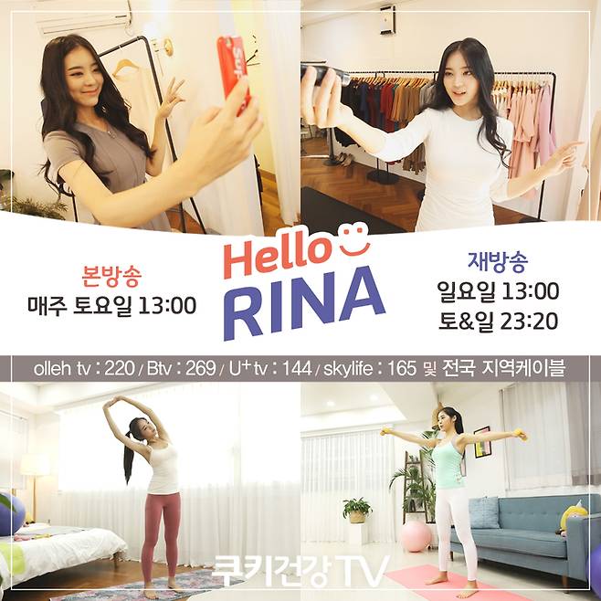 서리나의 보디 스타일링 비법이 담긴 「헬로 리나」는 매주 토요일 오후 1시에 방송되며, 재방송은 토요일 오후 11시 20분과 일요일 오후 1시, 오후 11시 20분에 쿠키건강TV를 통해 전파를 탄다. 쿠키건강TV는 전국 지역케이블 및 IPTV(olleh tv:220번/ Btv:269번/ U+tv:144번), 위성방송(skylife:165번)에서 만날 수 있다. 김민희 콘텐츠에디터