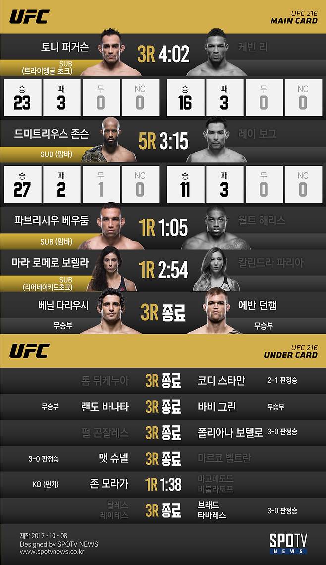 8일(한국 시간) 미국 라스베이거스 티모바일 아레나에서 열린 UFC 216 라이트급 잠정 타이틀전에서 케빈 리(25, 미국)를 3라운드 4분 2초에 트라이앵글초크로 잡았다.