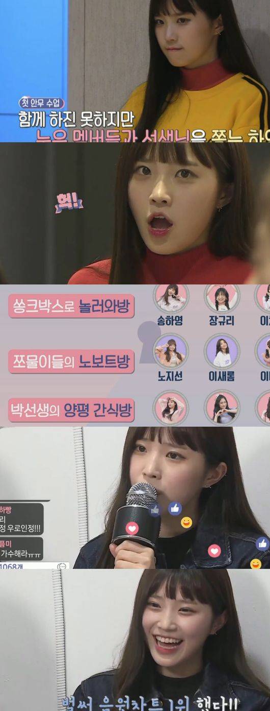 하지만 송하영은 허리 통증 때문에 연습을 제대로 소화하지 못했다. 트레이너 선생님에게 양해를 구했고 중간에 다른 멤버들의 연습을 지켜봐야 했다.