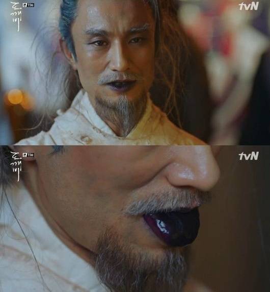 고려시대 간신 박중원(김병철 분)은 기타누락자로 현생에 떠돌아다녔다. 그야말로 충격 전개. 그는 지은탁 앞에 나타나 보랏빛 입술로 사악하게 "반갑다. 네가 그 도깨비 신부구나"라고 말했다. 보라색 혓바닥을 낼름 거리는 그를 보며 시청자들은 '악' 소리를 내질렀다.