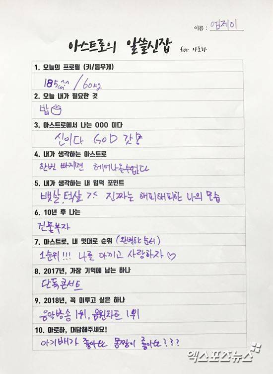 Q. 그래서 그런가. 역시 아스트로의 몸 좋은 순위를 썼군요