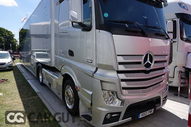 F1에서 연전연승을 거두며 호황기를 맞이한 메르세데스-AMG 페트로나스 팀은, 당연하게도 다임러 트럭을 사용한다. 차종은 악트로스. 100년 가까운 ‘실버 애로우’ 전통에 따라 차 전체가 은색으로 칠해졌다. 메르세데스-벤츠는 오래 전부터 각종 상용차를 만들어 왔다. 모터스포츠 대회에도 항상 자사의 트럭을 사용할 정도로 자부심이 대단하다.
