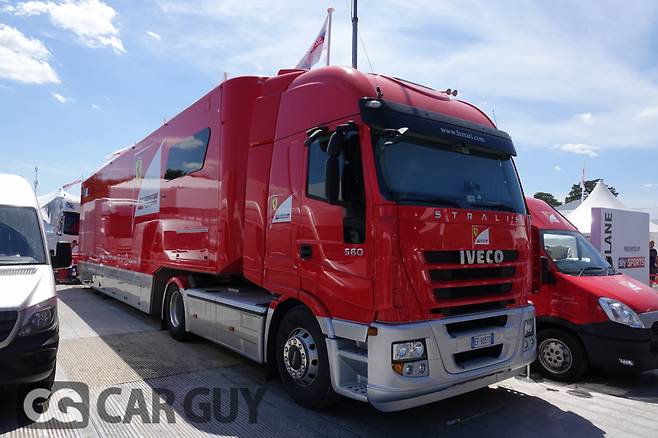 F1 역사 상 단 한 번도 빠지지 않고 대회에 참가한 페라리의 팀 트럭은 이베코다. 이베코는 이탈리아에서 가장 큰 대형상용차 브랜드다. 피아트의 특장차 및 대형상용 부문이 여러 회사와 합병돼 만들어진 회사였기에 피아트 그룹과는 긴밀한 관계를 유지하고 있다. 2009년부터는 스쿠데리아 페라리 레이싱 팀의 공식 차량으로 사용되고 있다.