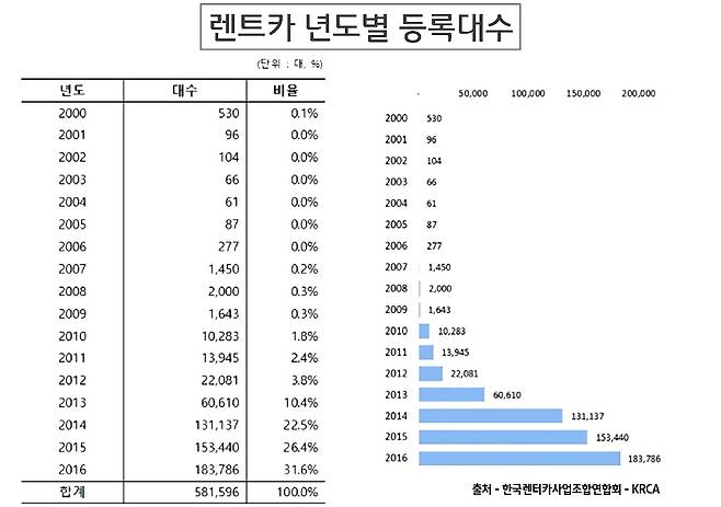 이후 렌트카 시장은 대도시를 중심으로 활성화됐다. 하지만 국내 렌터카 시장은 2010년까지 큰 성장을 하지 못했다. 대표적인 이유는 번호판이다. 빌린 차라는 이미지가 강한 '허'자 번호판을 소비자들이 선호하지 않아 장기렌터카 보다는 리스 시장이 커졌다.