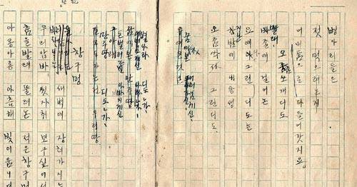 | 윤동주 시 ‘오줌싸개 지도’의 육필원고. 유족대표 윤인석 교수 제공 |