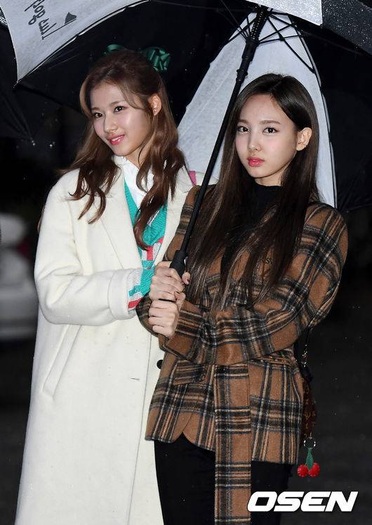 사나와 나연도 보입니다. 새하얀 코트를 보니 오늘 아침 쌀쌀한 날씨가 렌즈 안으로 스며듭니다. 그래도 환한 미소를 잊지 않는 두 미녀, 반가워요!