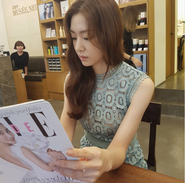 공개된 사진 속 서지혜는 민트색 원피스를 입고 한 패션 잡지에 열중하는 모습이다.