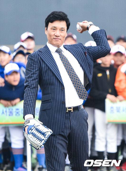 [OSEN=공주,박준형 기자] 3일 오전 충남 공주시 공주시립박찬호야구장에서 진행된 제17회 박찬호기 초등학교 야구대회에서 이승엽이 시구를 하고 있다./ soul1014@osen.co.kr