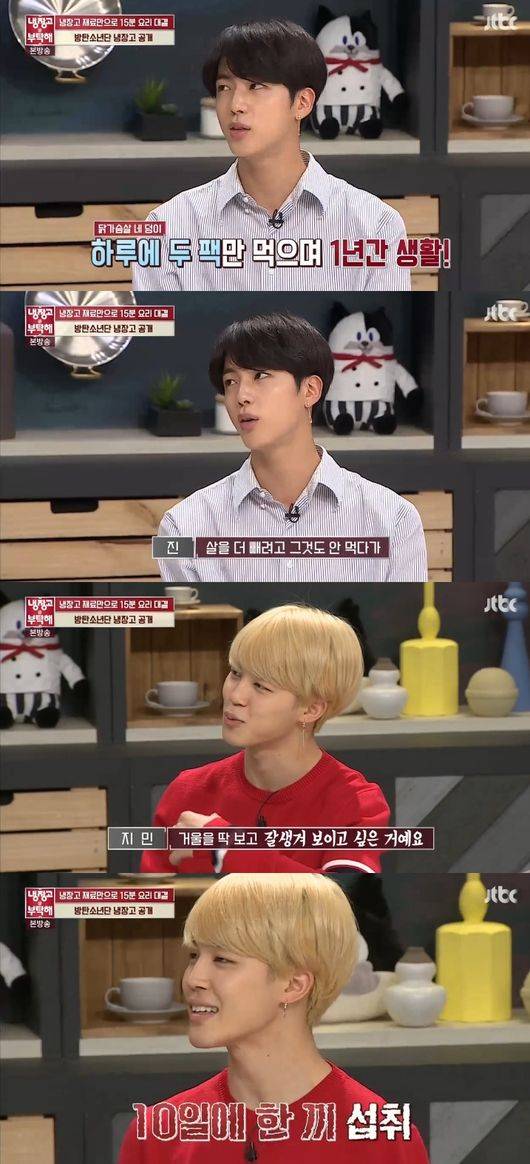 그룹 방탄소년단의 진과 지민이 다이어트 일화를 공개했다.