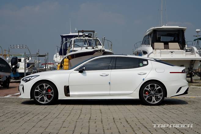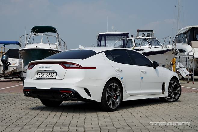 스팅어 2.0 터보를 시승하기 위해 스팅어 3.3 터보를 미리 시승했다. 시승한 모델은 모두 후륜구동 방식으로 각각 해당 파워트레인의 최상위 옵션을 모두 담은 풀패키지 모델이다. 풀패키지 차량의 경우 엔진룸이나 엠블럼을 제외하면 동일한 디자인을 갖는다.