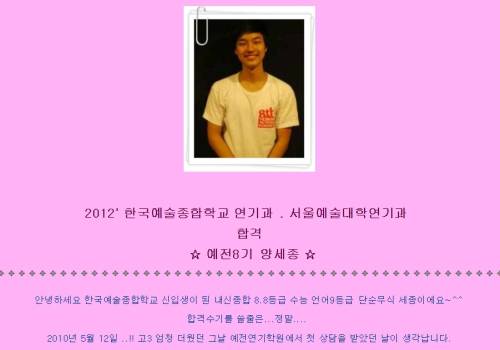 바로 2012년 3월 한 연기학원 카페에 양세종의 한국예술종합학교 연기과 합격 후기(아래 사진)가 게재됐던 것이다.