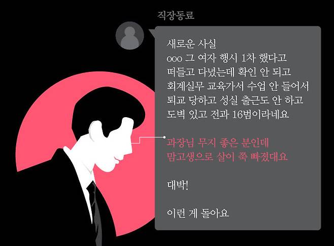 하지만 D씨는 회사의 대처가 더 황당했다고 말했습니다. 회사 측은 D 씨에게 "가해자는 그럴 사람이 아니다"라고 옹호하며 가해자의 행동은 "일 잘하라고 격려 차원이었고, 어깨는 토닥토닥 할 수 있지 않냐"고 반문했다는 겁니다. 이후 회사에는 오히려 D씨에 대한 안 좋은 소문이 돌기 시작했습니다.