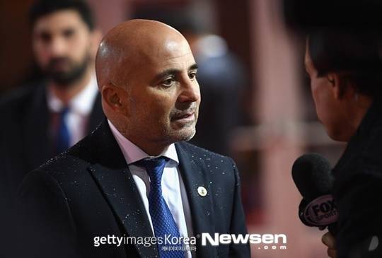 호르헤 삼파올리 감독이 조 추첨식 현장에 도착했다.