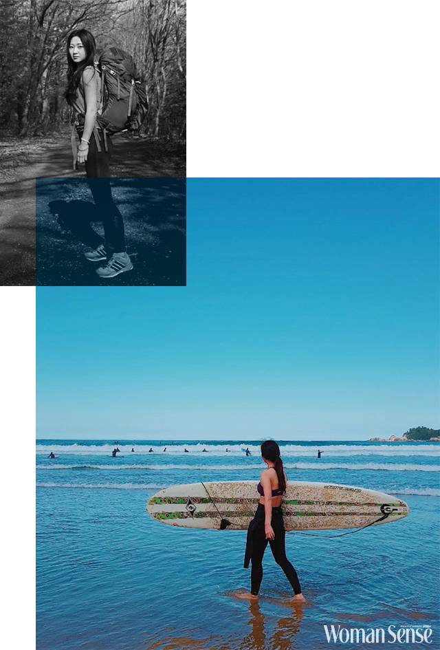 까무잡잡한 피부와 모델 못지않은 몸매로 SNS에서 ‘서핑 여신’으로 불리는 디자이너. 서핑에 대한 열정이 끓어올라 얼마 전 발리에서 한 달간 머물며 ‘#서프홀릭’ 라이프를 살았다.