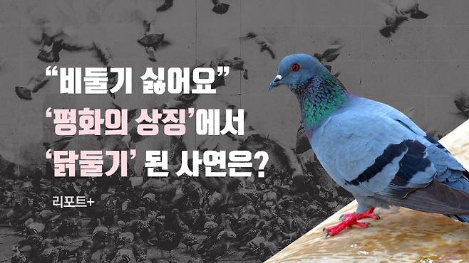쓰레기를 주워 먹어 잘 날지 못할 만큼 살이 쪘다는 의미의 '닭둘기', 배설물과 깃털로 각종 세균을 옮겨 '쥐둘기'라는 별명까지 얻은 비둘기. 오늘 리포트+에서는 비둘기가 기피 대상이자 유해 동물이 된 이유가 무엇인지 살펴보고 정말 사람에게 해로운 동물인지 따져봤습니다.