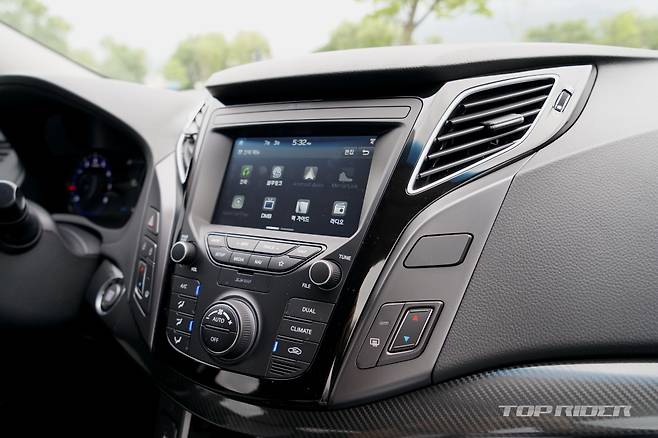 실내는 현대차가 과감한 디자인을 강조하던 YF쏘나타 시절의 흔적이 남아있다. 최근 유행하는 단순한 레이아웃 대비 공간감은 덜하다. 그러나 도어패널의 디자인과 도어 핸들, 스티어링 휠, 공조장치, 버튼류의 디테일 등에서 차급 이상의 정성이 느껴진다.