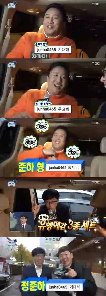 "정준하에게 '무한도전'은 뭐냐"는 질문엔 '성장통'이라고 답했다. 그러자 스튜디오에서 영상을 보던 유재석은 "저 형은 성장은 안 하고 통증만 있다"고 말해 폭소가 터졌다.