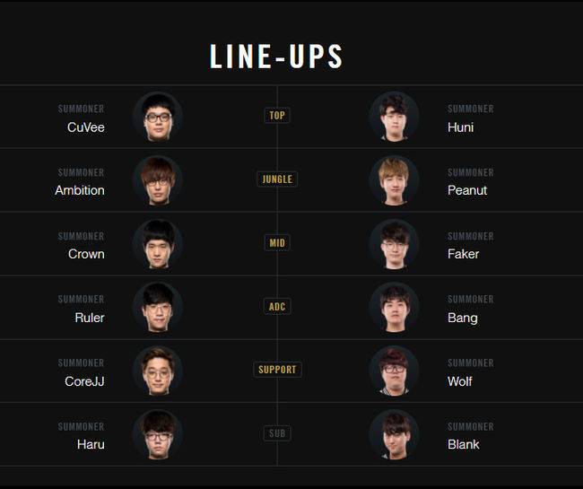 [롤드컵] 결승 라인업 발표..삼성 '앰비션' 강찬용 SKT '피넛' 한왕호 선발