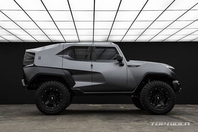 탱크는 군용차에서 모티브를 얻은 고가의 SUV 모델이다. 독특한 디자인은 람보르기니 출신 디자이너가 완성했다. 탱크에는 FCA그룹에서 공급된 6.4 V8 엔진이 적용돼 최고출력 500마력, 최대토크 59.4kgm를 발휘하며, 상시 사륜구동 시스템이 기본이다.