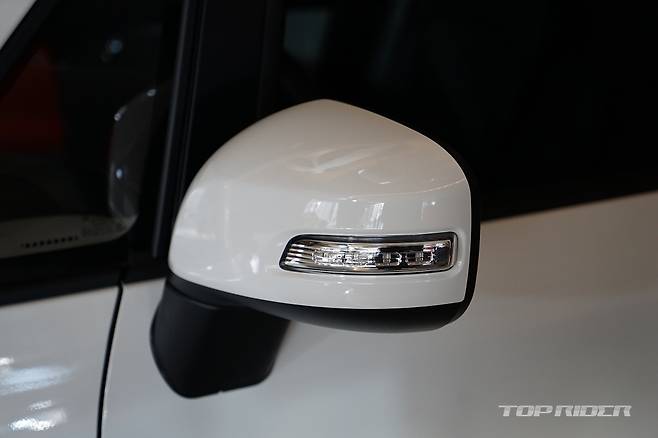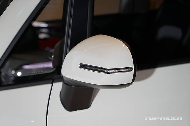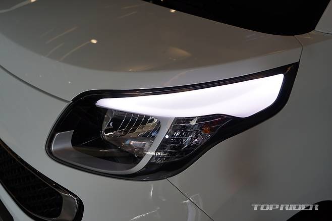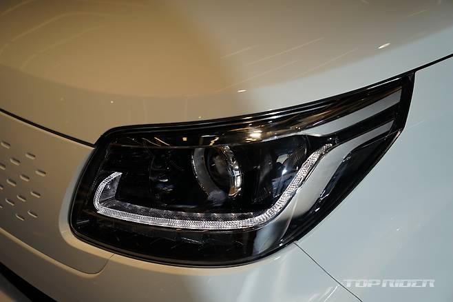 헤드램프부 상단의 베젤과 하단의 LED 주간주행등 사이에 위치한 프로젝션 헤드램프는 전면부에서의 강인한 인상을 강조하며, 주간주행등 하단에 위치한 픽셀화된 디자인의 턴시그널을 통해 고급감을 높였다.