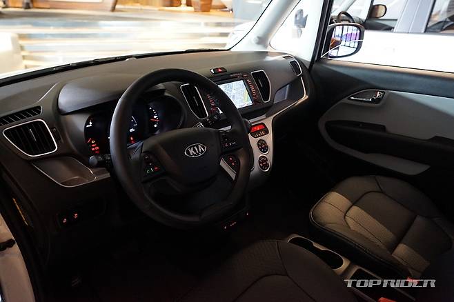 실내는 스포티하고 입체감 있는 3-스포크 스티어링 휠을 적용하고, 심플하고 와이드한 이미지의 센터페시아 메탈 베젤로 고급감을 높였다. 또한 귀여운 이미지의 기어노브를 새롭게 적용해 레이의 개성을 표현했다.