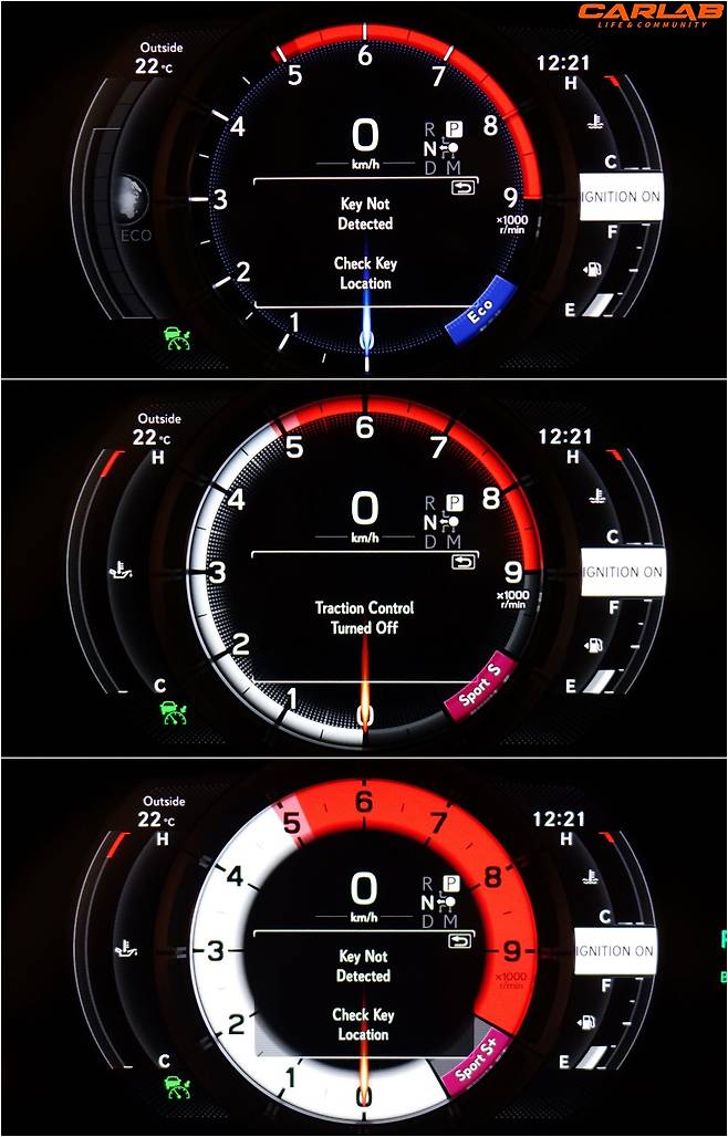 차가운 금속으로 만들어진 오디오나 공조장치 조작부는 따듯한 느낌이 나는 가죽으로 감싸 안았습니다. 한정판 슈퍼카였던 LFA에서 물려받은 디지털계기반도 여전히 멋지고, 센터패시아 모니터부터 조수석 송풍구까지 한 장의 투명 덮개로 마감한 점도 칭찬할 만합니다.