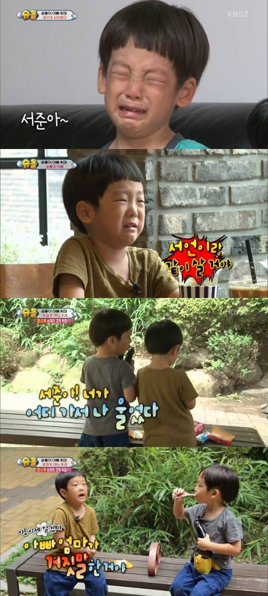 방송 직후 시청자들은 "왜 내가 눈물이 나지" "쌍둥이들 울때 같이 울었다" "서언이 서준이 훌쩍 컸네" "너무 사랑스럽다" "이휘재 문정원 부부 너무 흐뭇할 듯" 등 뜨거운 반응을 보이고 있다. 순수하고 사랑스러운 서언 서준의 우애가 안방에 감동을 안겼다.(사진=KBS 2TV '슈퍼맨이 돌아왔다' 캡처)