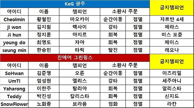 1세트 진에어 그린윙스 승 < 소환사의협곡 > KeG 광주광역시