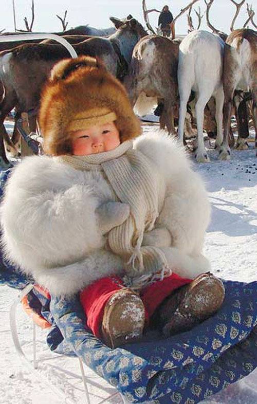 | 북시베리아 등에 사는 소수민족인 에벤키족의 아이. |