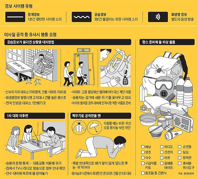 공습경보 땐.. 건물선 5분내 지하로, 밖이면 지하철역 달려가라