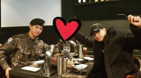 공개된 사진 속에는 군복무 중 첫 외박을 나온 옥택연이 준케이와 만나 시간을 보내고 있는 모습이 담겨 있다.