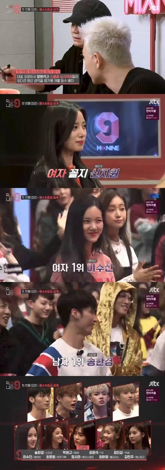 '믹스나인'의 첫 번째 등수와 등급이 공개됐다.