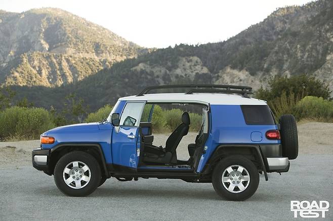 첫 번째 결과물은 2003년에 나왔다. 디트로이트 모터쇼를 무대 삼아 등장했다. 대중의 반응은 폭발적이었다. FJ40의 상징적인 요소를 간직한 채, 전통에만 안주하진 않았다. 예컨대 뒷좌석 도어는 BMW i3처럼 반대 방향으로 여는 구조였다. B필러도 없다. 도어 주변부를 특수 고강도 강철로 빚어 측면 충격에 대응했다. 얼굴엔 토요타 엠블럼 대신, FJ40이 쓰던 ‘TOYOTA’ 글자를 그릴 위에 새겼다.