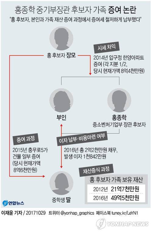 (서울=연합뉴스) 박성진 이유미 기자 = 다음 달 10일 열리는 홍종학 중소벤처기업부 장관 후보자의 국회 인사청문회에서는 홍 후보자와 가족의 재산 증식 과정에 대해 검증이 있을 것으로 예상된다.