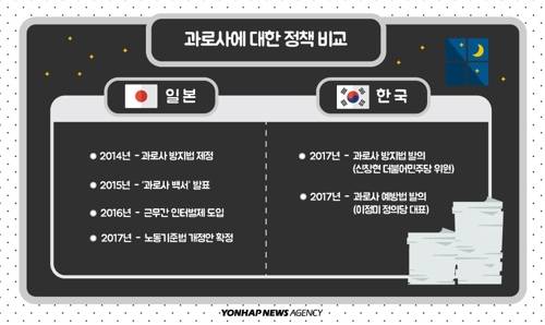 2014년 '과로사 방지법'을 제정한 일본은 한발 앞서 과로사 방지에 속도를 내고 있다. 2015년에는 과로사의 실태와 방지책을 보고하는 '과로사 백서'를 세계 최초로 발표했다.