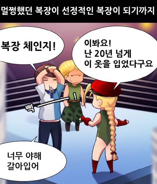 [게임 만평] 20년 이상 멀쩡했던 복장이 '선정적인 복장'이 되기까지