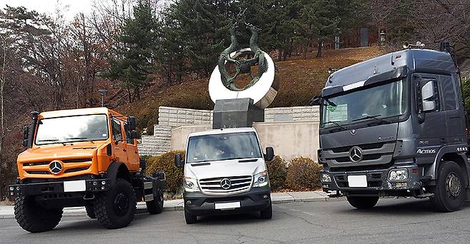 벤츠가 만들고 있는 트럭의 종류는 다양하다. 거의 특장차에 가까운 형태의 유니목이 있고, 화물 수송용 밴(van) 형태의 차량, 그리고 적재량이 수십 톤에 이르는 거대한 트럭 등이 있다. 게다가 그들의 바리에이션을 따져본다면 가히 수백 종류가 될 것이다. 그렇지만 그토록 수백 종류에 이르는 그들의 트럭은 유니목 계열 한 종류, 밴 형태의 승합 차량, 그리고 정말로 캐빈과 적재함 이라는 ‘보통의(?) 트럭’ 구조와 형태를 가진 차종 등의 세가지 그룹으로 압축된다.