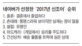 졸혼·츤데레·셀럽·하드캐리·간선상차…. 네이버가 28일 발표한 '올해 가장 많이 검색된 신조어(新造語)' 순위에서 1~5위를 차지한 단어들이다. 네이버는 올해 1~11월까지 자사의 온라인 국어사전에서 검색된 횟수를 기준으로 신조어 순위를 정해 공개했다. 신조어는 새로운 상황을 표현하기 위해 만들어지기 때문에 시대의 변화를 엿보는 단면 성격이 있다.