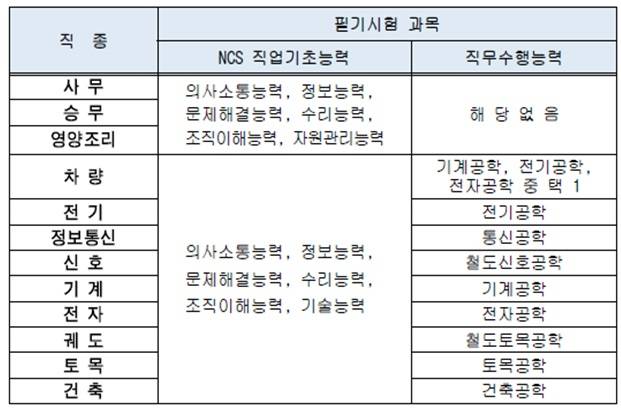전공이 필요한 기술 쪽은 NCS직업기초능력 40문제에 직무에 해당하는 전공 시험 40문제다. NCS는 의사소통능력, 정보능력, 문제해결능력, 수리능력, 조직이해능력까지는 앞서 사무나 승무, 영양조리 직무와 같은데 자원관리능력이 기술능력으로 바뀌어 있어서 한 영역만 다르다.