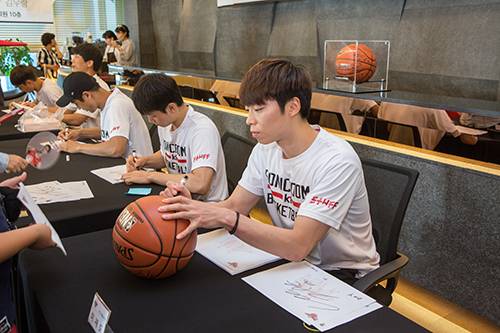 또한 kt 주축선수 김영환, 박상오, 이재도, 김우람, 김현민이 참여하는 팬 사인회도 병원 10층에서 진행됐다. 선수들은 오랜만에 만난 부산 팬들에게 일일이 사인을 해주며 반갑게 인사를 나눴다.