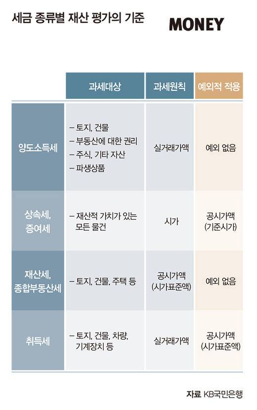 일단, 부동산 관련 상속·증여세를 줄이기 위해서는 과세대상의 시가와 기준시가(공시가액)부터 구분해야 한다. 상속·증여세는 시가, 양도소득세와 취득세는 실거래가 기준을 원칙으로 한다. 상속세는 사망일 전후 6개월, 증여세는 증여일 3개월 전후 유사하거나 같은 물건이 매매되거나 감정평가가 2건 이상 있으면 그것을 기준으로 시가를 계산한다. 시가를 판단할 수 없을 때는 기준시가를 기준으로 세금을 계산할 수 있다.